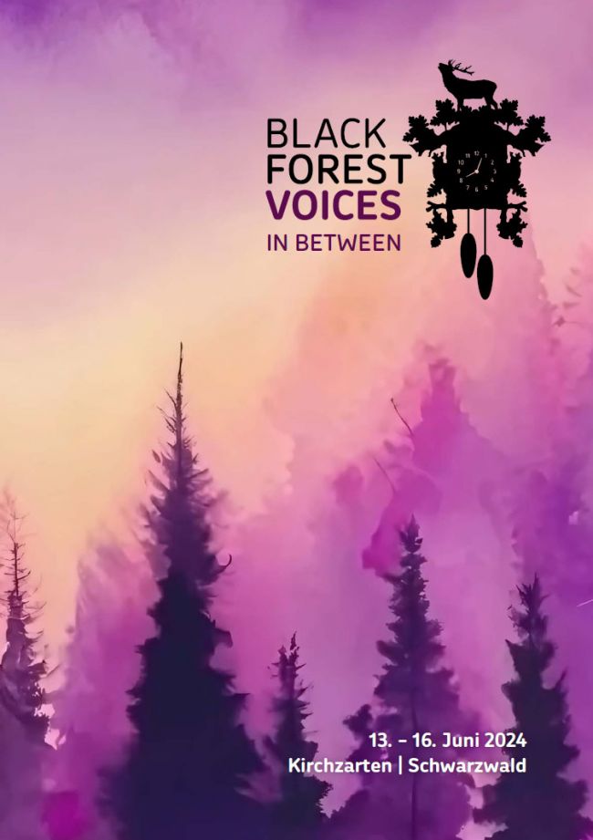 Singen macht Freude, gemeinsames Singen schafft ein freudvolles Miteinander und Gemeinschaft! Diese Überzeugung trifft beim Festival Black Forest Voices (BFV) auf die Idee von lokaler Verbundenheit und globalen Verbindungen – und schafft so einen Ort, eine Plattform der Begegnungen, des Austauschs, und des voneinander Lernens auf Augenhöhe. Im ländlichen Kirchzarten im Schwarzwald wird seit seiner Gründung 2019 ein Vokalfestival mit vielseitigen Konzerten, Workshops sowie Mitsing- und Mitmach-Formaten für Einsteiger:innen und Fortgeschrittene, Publikum und Fachleute etabliert: Begegnungen zwischen Laien und Profis, zwischen Menschen lokaler und internationaler Herkunft und Kulturkreisen bilden die Grundlage der Festival-Idee und seiner Programme und Formate. BFV legt Wert darauf, dass die Inhalte der Veranstaltungen in Kooperationen, Arbeitsgruppen, regem Austausch mit und zwischen lokalen Musiker:innen, -vereinen und Institutionen sowie Playern und Stars der nationalen wie internationalen Vokalszene erarbeitet werden. Das BFV-Festival ist – trotz der nunmehr fast dreijährigen pandemiebedingten Einschränkungen – vor Ort äußerst anerkannt und national wie international bestens bekannt, vernetzt und im lebendigen Kontakt mit den verschiedenen Institutionen, Partner:innen, Musiker:innen und Ensembles. [Quelle: www.blackforestvoices.com, 20.02.2025]